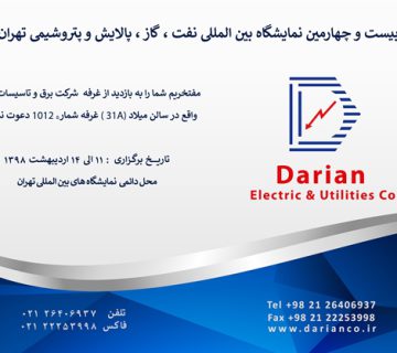 یازدهمین نمایشگاه تخصصی صنعت نفت خوزستانDarian Co1397/03/11مفتخریم شما را به بازدید از غرفه شرکت برق و تاسیسات داریان واقع در سالن خرمشهر غرفه 153 دعوت نماییم ... ادامه مطلب